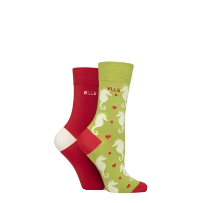 Women's 2 Pair Elle Bamboo Patterned and Plain Socks Coastal Joy 4 8