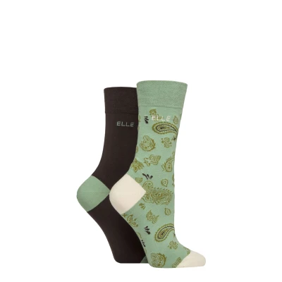 Women's 2 Pair Elle Bamboo Patterned and Plain Socks Forager 4 8
