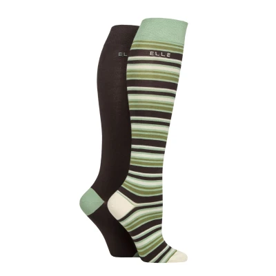 Smooth and sleek, soft and silky, feel the difference of natural bamboo in these pretty women's’ Elle Bamboo Striped and Plain Knee High Socks. The lightweight, fine gauge weave will gently hug your legs and keep you warm – but not too warm, because bamboo’s ability to regulate heat means your legs and feet are maintained at an even temperature.Bamboo is moisture absorbing, antibacterial and anti-allergenic, so you remain fresh and dry, a perfect skin environment, particularly if you have sensitive skin. This twin pack of Elle Bamboo Striped and Plain Knee High Socks are made with gently elasticated tops and comfortable Smooth Linked Toes for smooth seams.