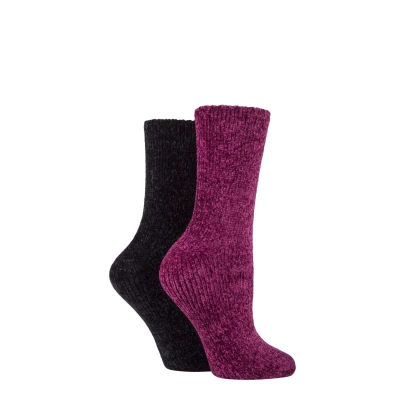 Super-soft and snug in fluffy, silky-velvet feel yarn, these Women's Elle Chenille Boot Socks bring a luxury look and touch to your weighty winter footwear. The glamorous socks come as a twin pack of contrasting single colour pairs, with a longer ankle length suitable for most ankle boots. The chenille weave is thick but surprisingly light to wear, and gives the socks a blissful skin feel for you to enjoy all day long.