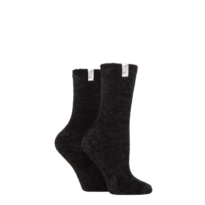 Women's 2 Pair Elle Chenille Leisure Socks Black 4 8