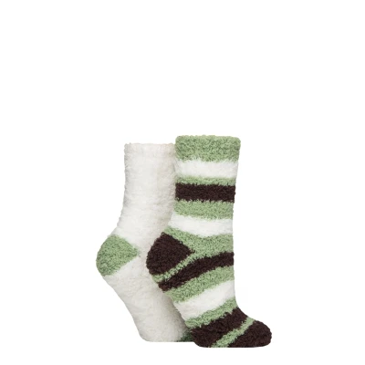 Women's 2 Pair Elle Fluffy and Cosy Blissful Bed Time Socks Forager 4 8