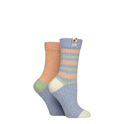 With an eye-catching blend of colour and pattern, and made in a mid-weight knit, these two pairs of Elle Soft Ribbed Boot Socks are designed to complement and enhance heavier footwear like ankle boots. each twin pack of the women’s boot socks has a mix of striped and plain leg styles, each with contrast colour cuffs and toes. The classic ribbed knit adds extra cosiness and improves the leg fit of these women's’ boot socks, while the marl colour details hint at a delightfully traditional style detail for these casual everyday fashion socks. Decorative, sewn-on ’Elle’ tabs feature on the cuffs.