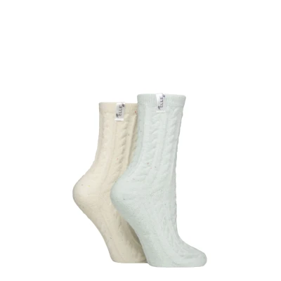 Women's 2 Pair Elle Speckled Cable Cosy Socks Powder Blue 4 8