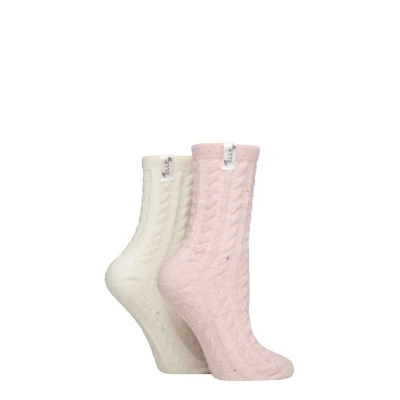 Women's 2 Pair Elle Speckled Cable Cosy Socks Soft Pink 4 8