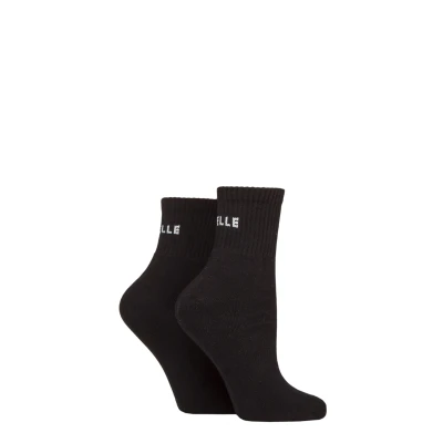 Women's 2 Pair Elle Sports Cushioned Ankle Socks Plain Black 4 8