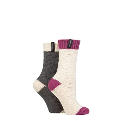 Women's 2 Pair Glenmuir Classic Fashion Boot Socks Square Charcoal / Beige UK 4 8