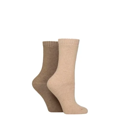 Women's 2 Pair Glenmuir Fully Cushioned Thermal Boot Socks Brown / Beige 4 8
