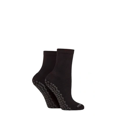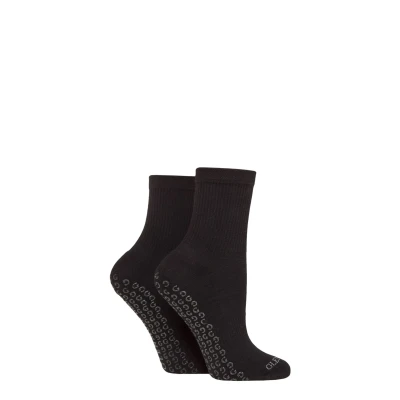 Women's 2 Pair Glenmuir Sport Cotton Half Cushioned Mid Length Yoga Socks with Grips Black 4 8