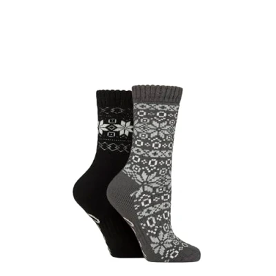 Women's 2 Pair Jeep Fairisle Brushed Thermal Boot Socks Black / Charcoal 4 8