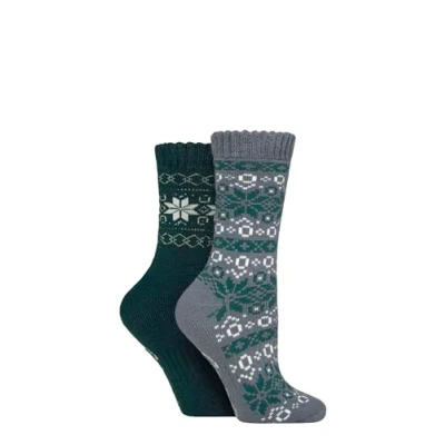 Women's 2 Pair Jeep Fairisle Brushed Thermal Boot Socks Forest / Slate 4 8