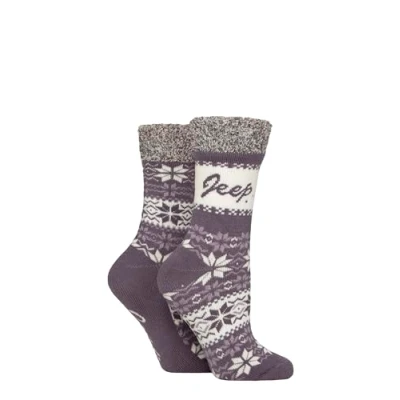 Women's 2 Pair Jeep Fairisle Soft Top Boot Socks Gift Set Lilac / Cream 4 8