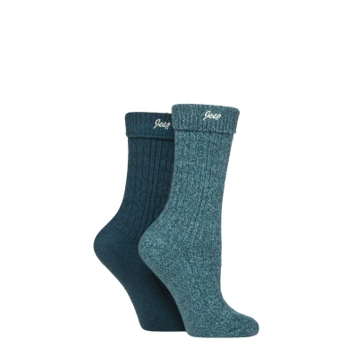 Women's 2 Pair Jeep Super Soft Turn Over Top Polyester Boot Socks Jade / Teal 4 8