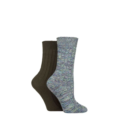Women's 2 Pair SOCKSHOP Chunky Rib Cotton Boot Socks Wild Terrain 4 8