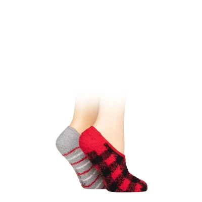 Women's 2 Pair SOCKSHOP Wildfeet Animal and Patterned Cosy Slipper Socks with Grip Red Checker Stripes 4 8 UK