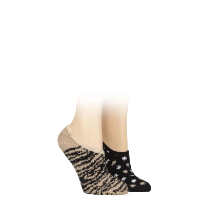 Women's 2 Pair SOCKSHOP Wildfeet Animal and Patterned Cosy Slipper Socks with Grip Tiger Print / Spots 4 8