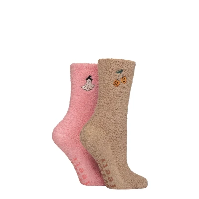 Women's 2 Pair SOCKSHOP Wildfeet Embroidered Cosy Lounge Socks Pumpkins / Ghost 4 8