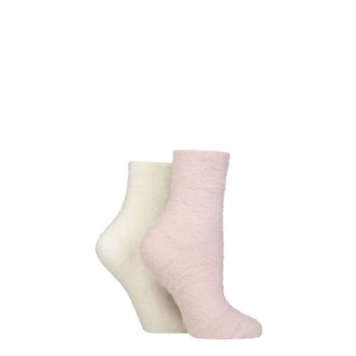 Women's 2 Pair SOCKSHOP Wildfeet Fluffy Feather Socks Pink / Snow 4 8
