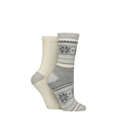 Women's 2 Pair SOCKSHOP Wildfeet Leisure to Lounge Socks Fair Isle Grey / White 4 8