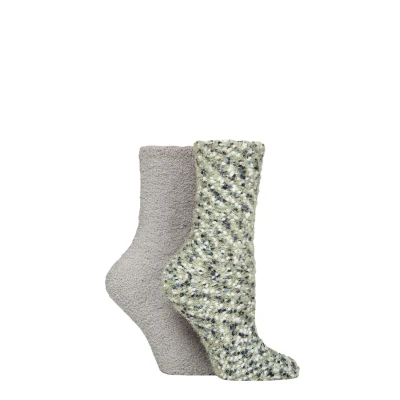 Women's 2 Pair SOCKSHOP Wildfeet Popcorn Cosy Lounge Socks Green / Grey 4 8