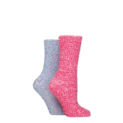 Women's 2 Pair SOCKSHOP Wildfeet Sparkle Popcorn Lounge Socks Pink / Blue 4 8