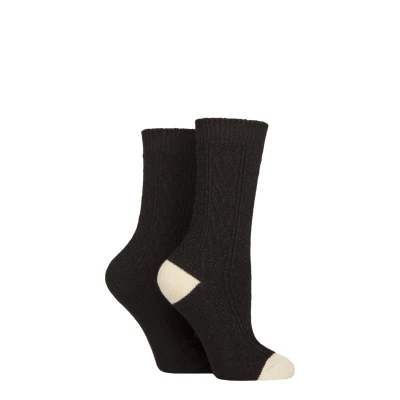 Women's 2 Pair SOCKSHOP Wool Mix Boot Socks Black 4 8