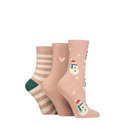 Women's 3 Pair Caroline Gardner Christmas Patterned Cotton Socks Snowman 4 8