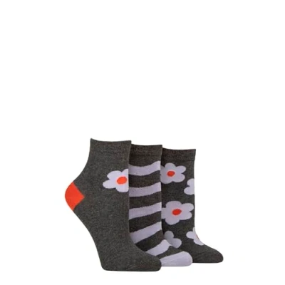 Women's 3 Pair Caroline Gardner Cotton Patterned Mid Length Crew Socks Charcoal / Lilac Flowers 4 8