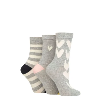 Women's 3 Pair Caroline Gardner Patterned Cotton Socks All Over Hearts Light Grey UK 4 8