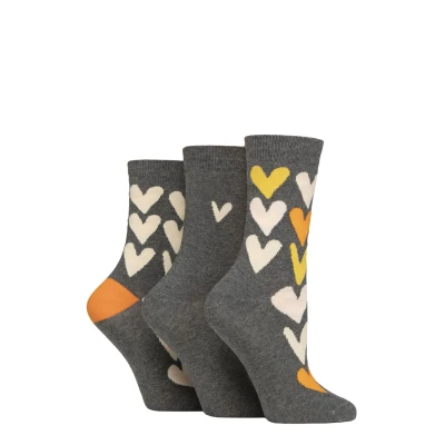 Women's 3 Pair Caroline Gardner Patterned Cotton Socks Big Hearts Grey 4 8
