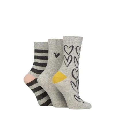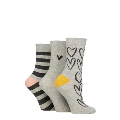 Women's 3 Pair Caroline Gardner Patterned Cotton Socks Large Heart Outline Light Grey 4 8