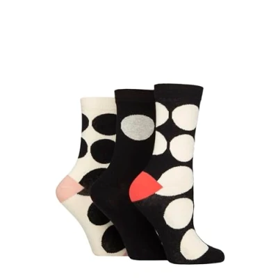 Women's 3 Pair Caroline Gardner Patterned Cotton Socks Large Spots Black 4 8