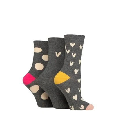Women's 3 Pair Caroline Gardner Patterned Cotton Socks Mini Hearts / Spots Grey 4 8