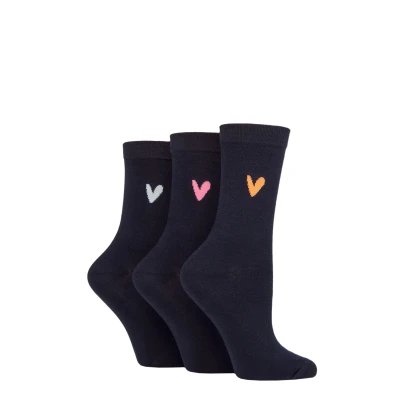 Women's 3 Pair Caroline Gardner Patterned Cotton Socks Navy Heart 4 8 Ladies