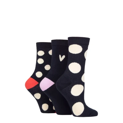 Women's 3 Pair Caroline Gardner Patterned Cotton Socks Navy Spots 4 8 Ladies