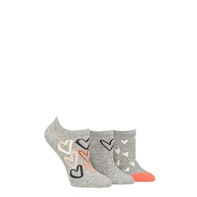 Women's 3 Pair Caroline Gardner Patterned Cotton Trainer Socks All Over Hearts Light Grey UK 4 8