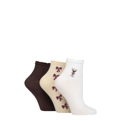 Women's 3 Pair Elle Frill Welt Ribbed Bamboo Anklet Socks Espresso Martini 4 8