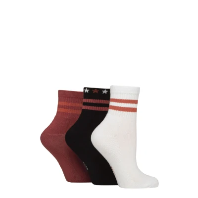Women's 3 Pair Elle Half Cushion Bamboo Sport Anklet Socks Wild Poppy Stripe 4 8