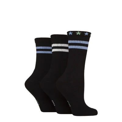Women's 3 Pair Elle Half Cushion Bamboo Sports Socks Black / Forager 4 8