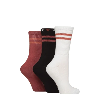 Women's 3 Pair Elle Half Cushion Bamboo Sports Socks Wild Poppy Stripe 4 8