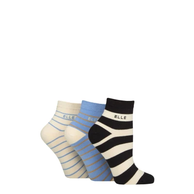 Made from a super-soft, combed cotton rich blend, Elle Striped, Plain and Patterned Cotton Ankle Socks are versatile all-rounders for your daily fashion choices in a triple pack of stripy styles that look equally great with jeans or trousers for work and casual wear. Extra kind to legs, Elle Striped Cotton Socks have comfort cuffs that hold gently, without leaving ugly, itchy marks on the ankles. The Smooth Linked Toes for smooth seams are welcome comfort features that you’ll appreciate every time you wear them.