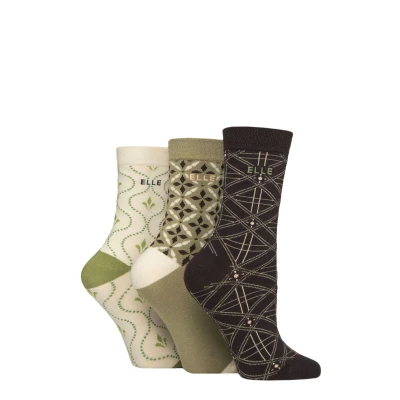 Women's 3 Pair Elle Plain, Striped and Patterned Cotton Socks with Smooth Toes Forager 4 8