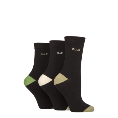 A triple pack of single colour socks with mixed colour details, Elle Combed Cotton Plain Socks with Stripes and Contrast Heel and Toe are delightfully, deceptively simple, but superb quality in fine, soft combed cotton rich yarn.Made with Elle’s usual care, these Elle brand socks have flat, Smooth Linked Toes for smooth seams and also comfort cuffs that are made to hold without pressure, so they’re gentle on feet and legs; you’re guaranteed of a great feel every time you wear them.