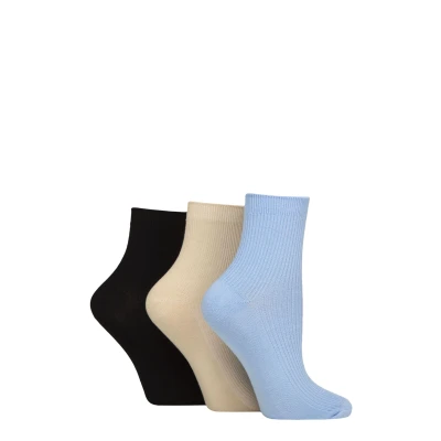 Women's 3 Pair Elle Ribbed Bamboo Ankle Socks Daisy Dream 4 8