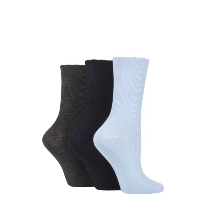 Women's 3 Pair Elle Ribbed Bamboo Socks with Scallop Top Navy / Charc Kentucky Blue 4 8 Ladies