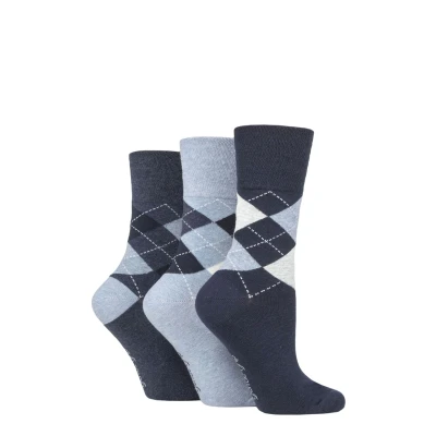 Women's 3 Pair Gentle Grip Argyle Patterned Cotton Socks Navy / Denim 4 8 Ladies