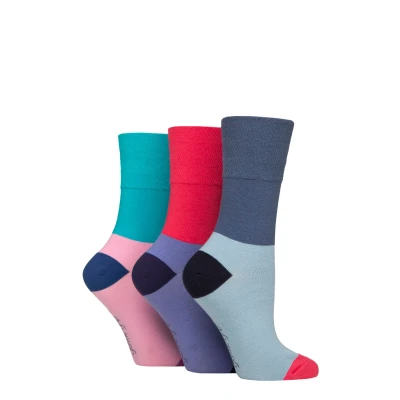 Women's 3 Pair Gentle Grip Colourburst Socks Coral / Turquoise Cornflower 4 8