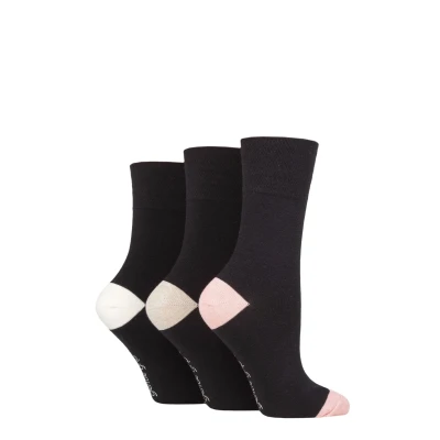 Women's 3 Pair Gentle Grip Cotton Patterned and Striped Socks Contrast Heel Toe Black 4 8 Ladies