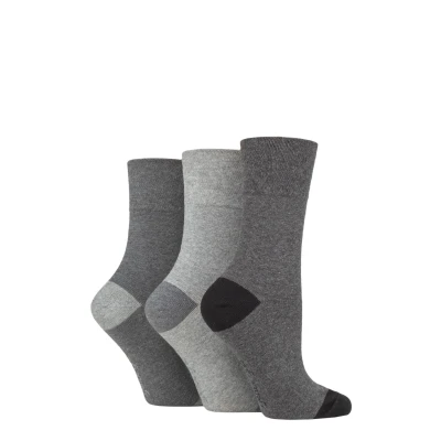 Women's 3 Pair Gentle Grip Cotton Patterned and Striped Socks Contrast Heel Toe Charcoal / Grey 4 8 Ladies