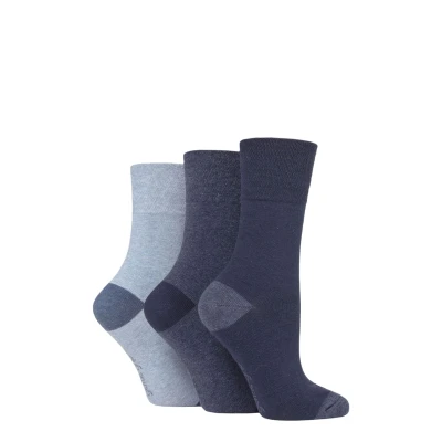 Women's 3 Pair Gentle Grip Cotton Patterned and Striped Socks Contrast Heel Toe Navy / Denim 4 8 Ladies